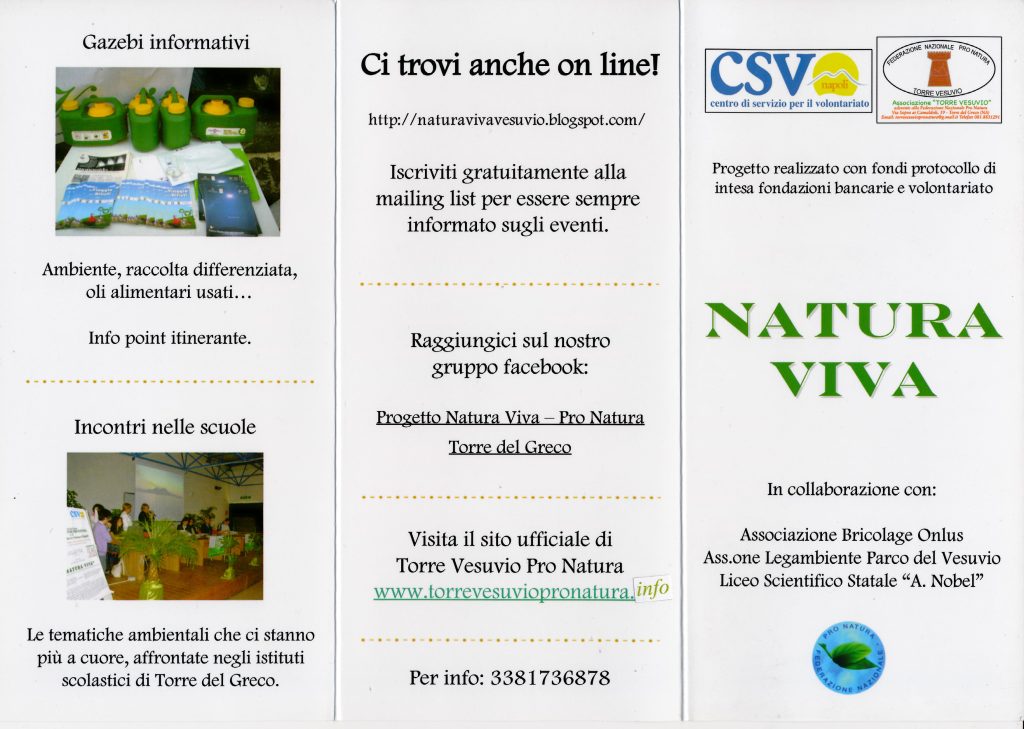 Progetto di sensibilizzazione e informazione ambientale, Natura viva, in collaborazione con CSV di Napoli ( Centro Servizi del Volontariato ), e scuole cittadine di ogni ordine e grado.