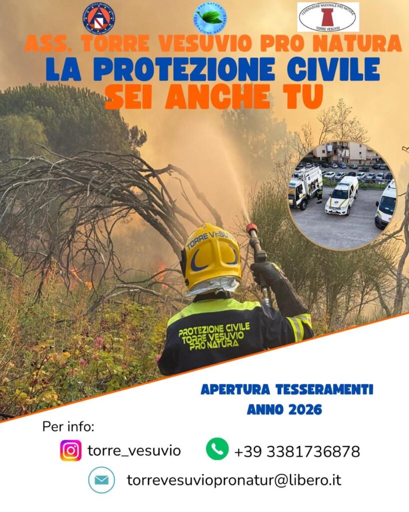 L’associazione Torre Vesuvio Pro Natura apre ufficialmente la campagna tesseramenti per l’anno 2026. Un invito rivolto ai cittadini che desiderano contribuire alla tutela del territorio vesuviano, alla prevenzione dei rischi e alla promozione di una cultura della responsabilità e della solidarietà. Entrare a far parte dell’associazione significa sostenere attività di salvaguardia ambientale, interventi di protezione civile, formazione, sensibilizzazione e presenza costante sul territorio. Il contributo dei nuovi tesserati è fondamentale per rafforzare le squadre operative e garantire interventi sempre più tempestivi ed efficaci.Chiunque condivida i valori di impegno, cura dell’ambiente e sicurezza della comunità può aderire alla campagna tesseramenti 2026 e diventare parte attiva della nostra associazione.